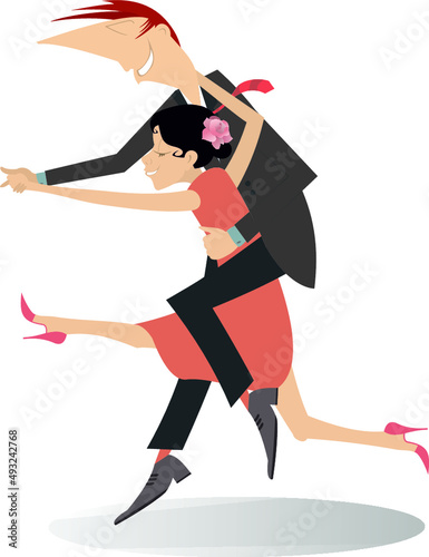 Fototapeta premium Dancing young couple illustration. Romantic dancing man and woman isolated...