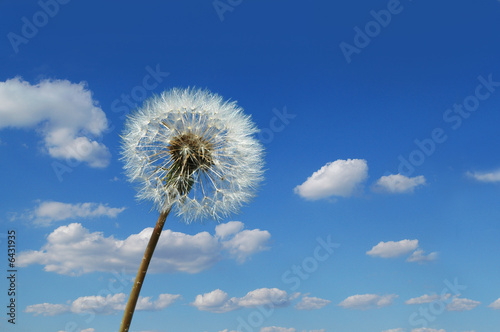 © Carlos Santa Maria, Fototapeta premium Dandelion close up isolated on a blue sky