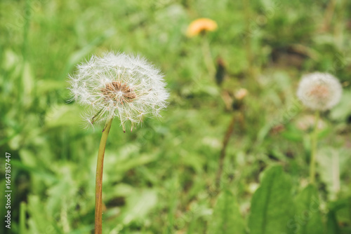 Fototapeta premium Dandelion flower in full bloom stands tall amidst lush green grass,...