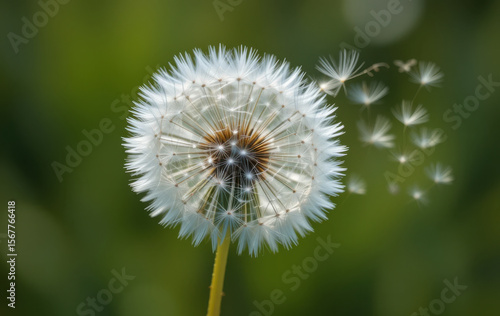 Fototapeta premium Dandelion flower with delicate seeds blowing in wind, symbolizing freedom and nature beauty