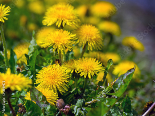 © Prajzner, Fototapeta premium dandelion flowers growing along a country road