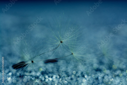 © Ekaterina Bokova, Naklejka premium dandelion fluffs on blurry background with bokeh