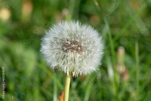 Naklejka premium Dandelion fruiting head in spring