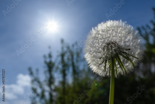 © eliosdnepr, Obraz premium Dandelion on blue sky background