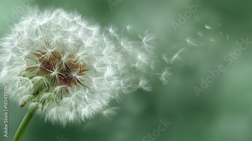 © tang, Fototapeta premium Dandelion Seed Dispersal in Nature, Symbolizing Journey, Graduation, and the Concept of New Beginnings.