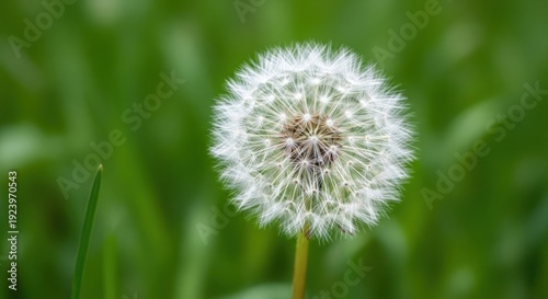 Fototapeta premium Dandelion Seed Head in Green Field.