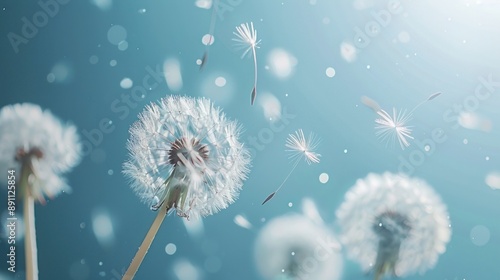 Obraz premium Dandelion Seeds Floating in the Wind