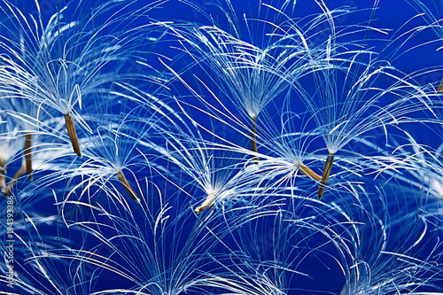 © kichigin19, Naklejka premium dandelion seeds on a light blue background, lightness, holiday