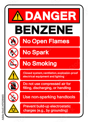 © ยงยุทธ จันทะบุตร, Fototapeta premium Danger Benzene No Open Flames Symbol Sign, Vector Illustration, Isolate On White Background, Label.EPS10