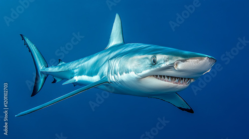 © Sehraye, Fototapeta premium Danger blue shark in cartoon style isolated on white background