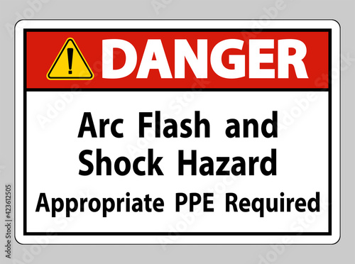 Fototapeta premium Danger Sign Arc Flash And Shock Hazard Appropriate PPE Required