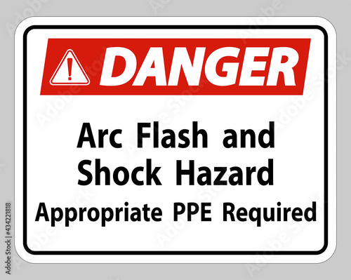 Fototapeta premium Danger Sign Arc Flash And Shock Hazard Appropriate PPE Required