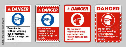 Obraz premium Danger Sign Do Not Enter Without Wearing Eye Protection,Vision Damage Can Result