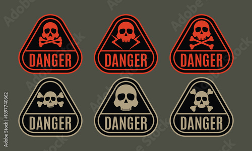 © Thirumaniselvam, Obraz premium Danger Skull Warning Alert Sticker Triangle Badges