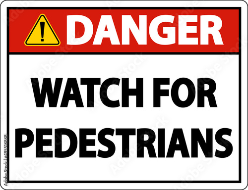 Fototapeta premium Danger Watch For Pedestrians Label Sign On White Background