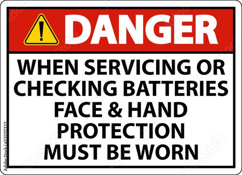 Fototapeta premium Danger When Servicing Batteries Sign On White Background