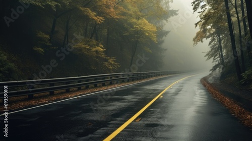 Fototapeta premium Dangerous autumn road in fog and rain