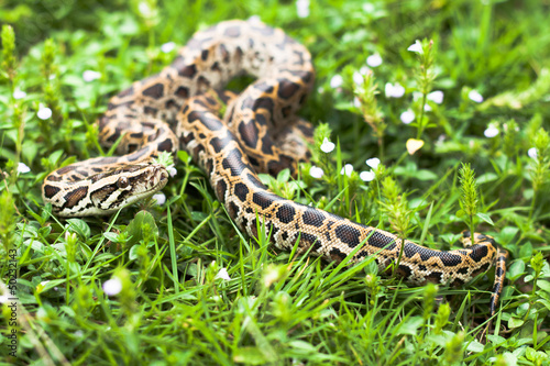© wahyudinfirman, Obraz premium Dangerous burmese python could be found between the grasses