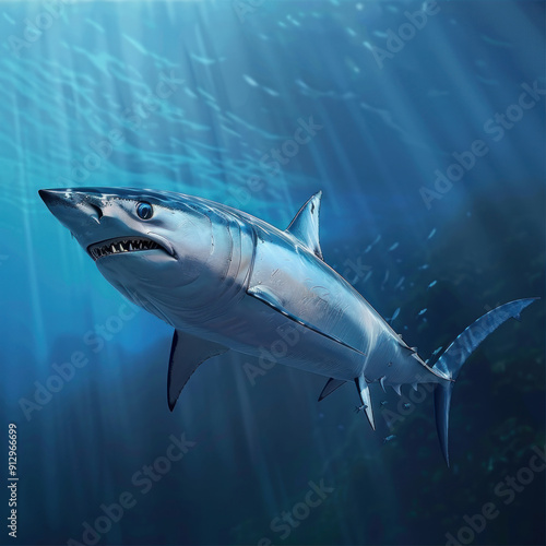 © Aqsapics, Fototapeta premium Dangerous shark swimming in sea water