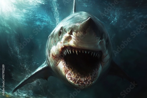 © Dzikrul Husnani, Fototapeta premium Dangerous Shark Wallpaper For Desktop , ai