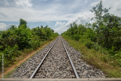 Fototapeta premium Dans le BambooTrain en marche, proche de Battamang, format paysage