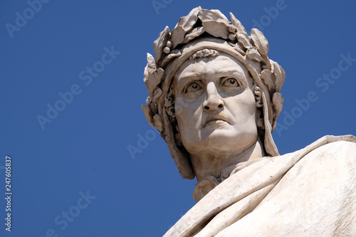 Fototapeta premium Dante Alighieri statue in Santa Croce square in Florence, Italy