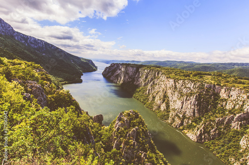Obraz premium Danube river gorge, looking from peak, amazing nature landscape, summer...