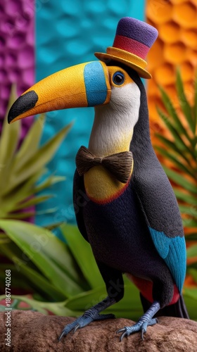 © Антон Федченко, Fototapeta premium Dapper Stylized Toucan Wearing a Top Hat and Bow Tie