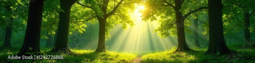 © AiGallery, Obraz premium Dappled sunlight filters through leafy canopy, , trees, forest