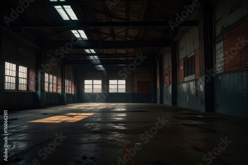 Fototapeta premium Dark abandoned warehouse interior weathered.