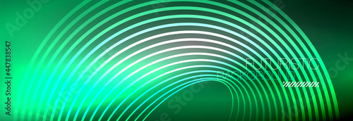 Obraz premium Dark abstract background with glowing neon circles. Trendy layout template...