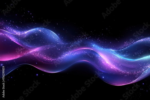 © Anha, Obraz premium Dark abstract background with glowing wave. Shiny moving lines design element. Modern purple blue gradient flowing wave lines. Futuristic technology concept. Vector illustration background