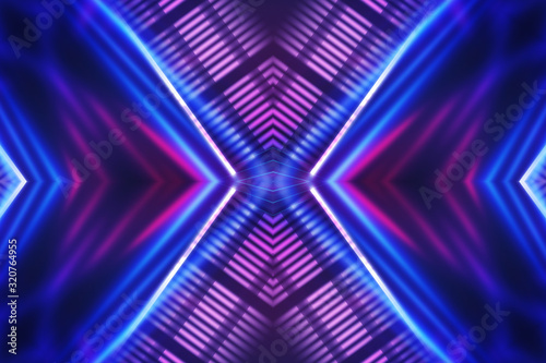 © Laura Сrazy, Obraz premium Dark abstract futuristic background. Neon glow, light lines, shapes. UV light.
