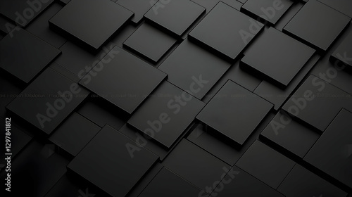 © julio, Naklejka premium Dark Abstract Geometric Cube Pattern With Shadow And 3D Perspective Background