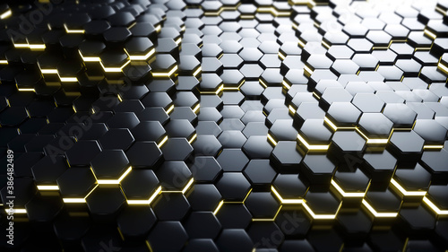 Obraz premium Dark abstract hexagons background. 3D render.