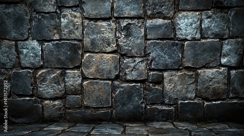 © ShakkBbo9495, Obraz premium Dark, aged stone wall, a textured backdrop.