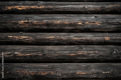 © Abuabdurrahman, Fototapeta premium Dark, aged wooden logs
