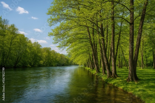 © AkuAku, Obraz premium Dark alder trees along the shores of a spring-fed river