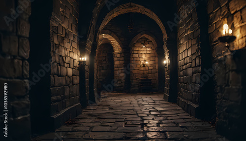 © Jonni78, Fototapeta premium Dark and creepy gothic castle background, hyper detail