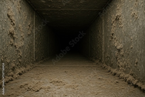 Obraz premium Dark and Dirty Ventilation Duct with Dust and Debris Accumulation in Industrial Setting