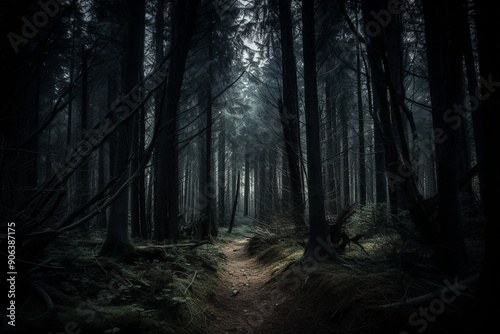 © AlexandraDaryl, Fototapeta premium Dark and haunted forest generative AI