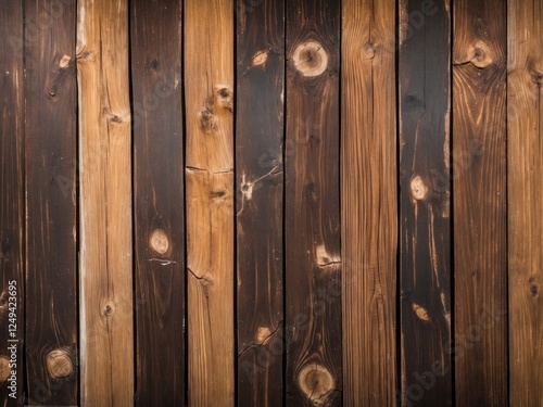 © LoFi J., Fototapeta premium Dark and light brown vertical wooden planks creating rustic background texture.