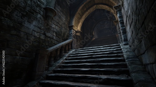 © Kitta Studio, Obraz premium Dark and Mysterious Stairs Descending into an Abandoned Dungeon