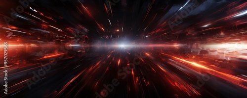 © Nipon, Fototapeta premium dark and red abstract background with light streaks
