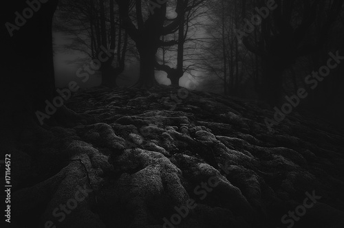 © mimadeo, Obraz premium Dark and scary forest with roots