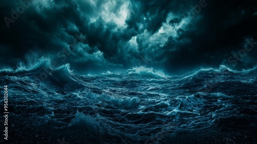 © aimodels24, Fototapeta premium Dark and Stormy Ocean with Thunderous Clouds and Lightning Strikes, Epic Atmospheric Scene