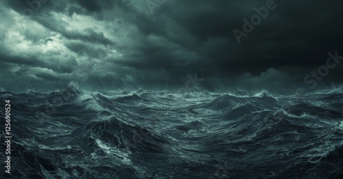 Fototapeta premium Dark and Stormy Sea with High Waves and Ominous Clouds Under Gloomy Atmosphere