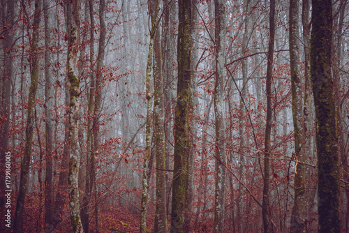 © Gaschwald, Obraz premium Dark autumn forest, romantic, misty, foggy landscape