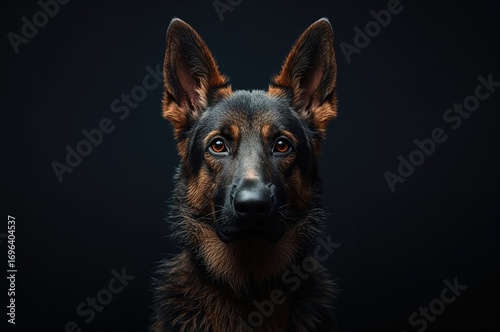 © Rizvan, Fototapeta premium Dark backdrop with a German shepherd
