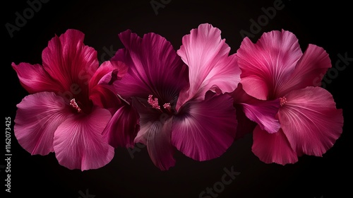 Fototapeta premium Dark Background Hibiscus Bloom Quartet Closeup
